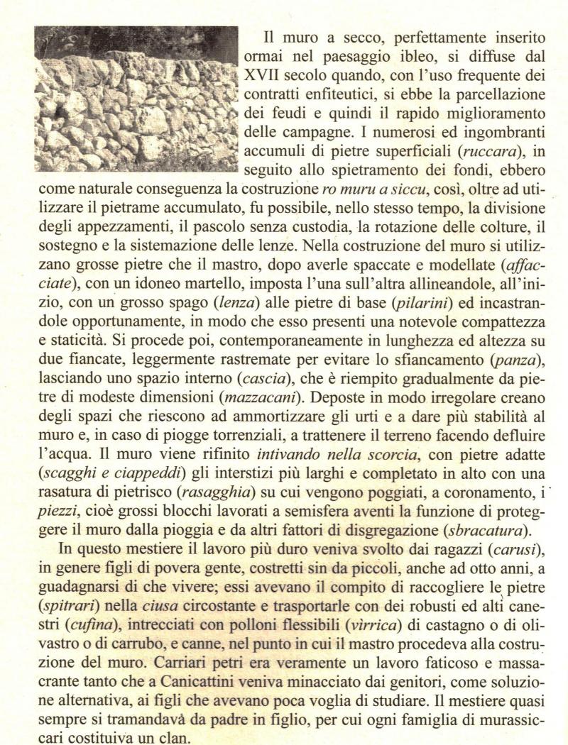 Due categorie, che come scrive lo storico ed etnologo Luigi Lombardo sul suo “La cultura popolare” edito dal Gal Hyblon Thukles, “condividono il possesso della tecnica di base della ‘pietra su pietra’, come la profonda conoscenza della materia e delle sue caratteristiche peculiari”