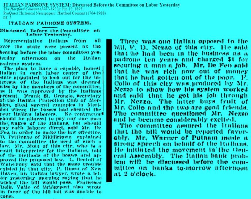 Mr. De Feo fought hard against the system and was able to convince the State legislature to pass an anti padrone law in 1895!