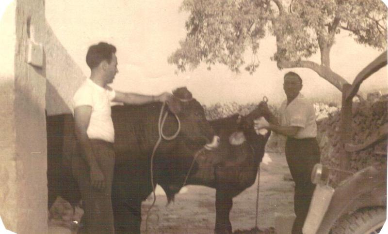 1948 or 49: Santo con suo figlio Giuseppe al macello!