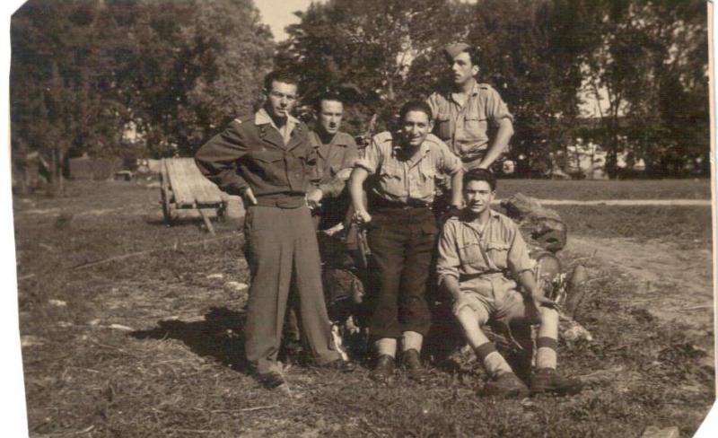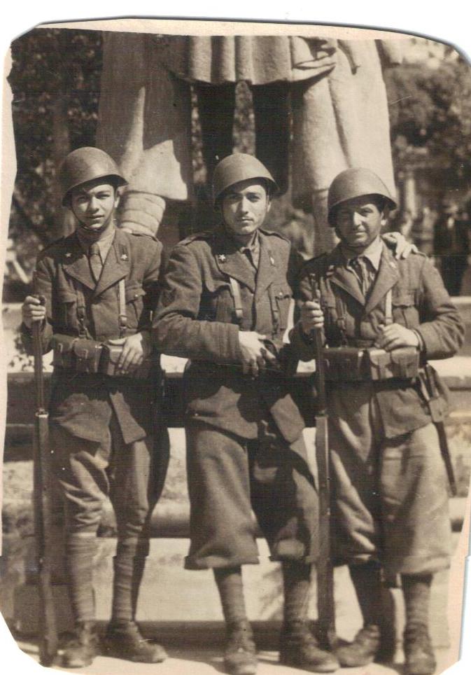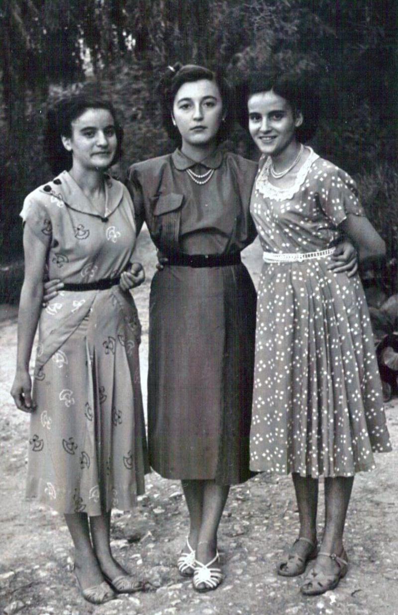 1940's, Turi Gulino, figlio di Nele a sinistra; Giovanni Ciarcia, futuro marito di Rosalia a destra; nel centro Rosalia a sinistra e sorella Maria a destra.